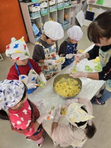 ☆11月12日(水曜日)クッキング保育🥣スイートポテト&ぎょうざのつつみ揚げ🍠🍠🍠