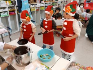 元気に「いらっしゃいませ~!!」お客様をご案内したり、食事をはこんだりと、小さなウエイトレスさんは大忙しです。さくらぐみ・すみれぐみ・たんぽぽぐみの小さな小さなお客様にも優しく接することができました。5人で頑張りましたね。もも組のお兄さん・お姉さんお疲れさまでした(*^^)v