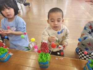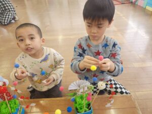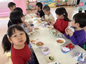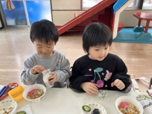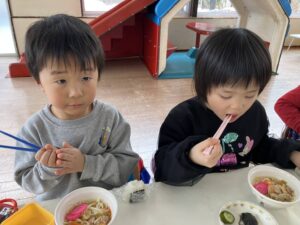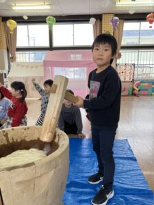 毎年恒例のおもちつき会でした。保育園では”杵”と“臼”を使ってもちつきをします。家庭ではなかなか使われなくなってきた“杵”と“臼”保育園では貴重な体験ができます。昔ながらの伝統行事を子どもたちと一緒に経験することの大切さを改めて感じ、豊かな体験になるよう今後も続けていきたいと思います。